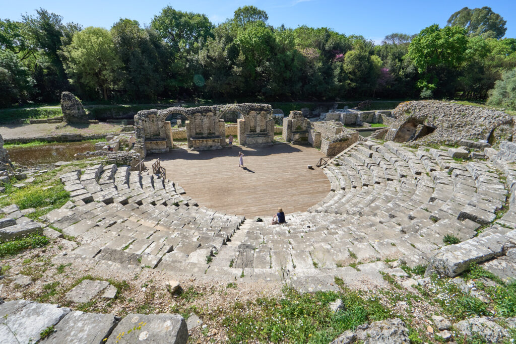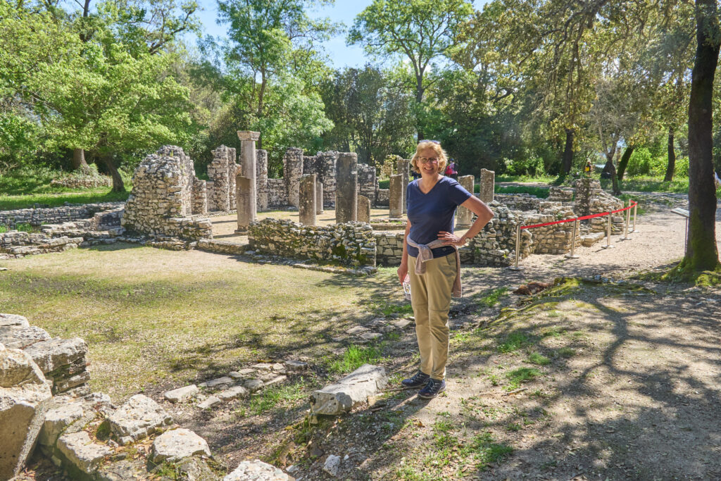 Wir haben sehr viel Glück, denn die Sonne scheint endlich mal! Wir brechen früh auf und es sind nur ganz wenige Besucher unterwegs. Der Achäologiepark Butrint liegt nur 4 km südlich von Ksamil auf einer kleinen Halbinsel. Er ist seit 1992 UNESCO-Weltkulturerbestätte. Bereits 1928 begannen erste Erforschungen und Ausgabungen von italienischen Archäologen. Die bedeutenden Bauwerke wurden allerdings erst ab den 70er Jahren freigelegt. Die Anlage selbst befindet sich in einem sehr schönen hügligen Gelände mit üppiger Vegetation und schönen Wanderwegen rund um die Sehenswürdigkeiten mit teilweise reizvollen Blicken aufs Meer und auf die Lagunen des angrenzenden Nationalparks. Besonders gefallen hat uns das Amphitheater und das Löwentor.