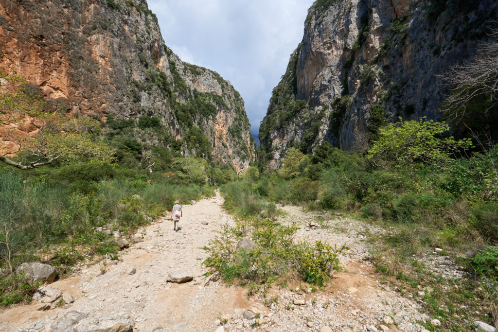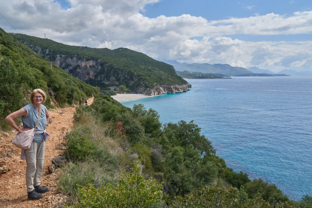 Wir fahren bei Sonne wieder auf die Küstenstrasse Richtung Norden und von der Küstenstrasse bei Dhermi ab zum Gjipe Beach, mit einer etwas abenteuerlichen Anfahrt. Auf den Parkplatz vor dem Abstieg zum Strand erwartet uns eine Dame, die 10 Euro Parkentgelt verlangt. Wir finden es überteuert, Verhandeln hilft nicht, die enenergische Dame läßt nicht locker. So schnüren wir unsere Wanderschuhe und wandern zum weißen Sandstrand und von dort aus in einen Canyon.