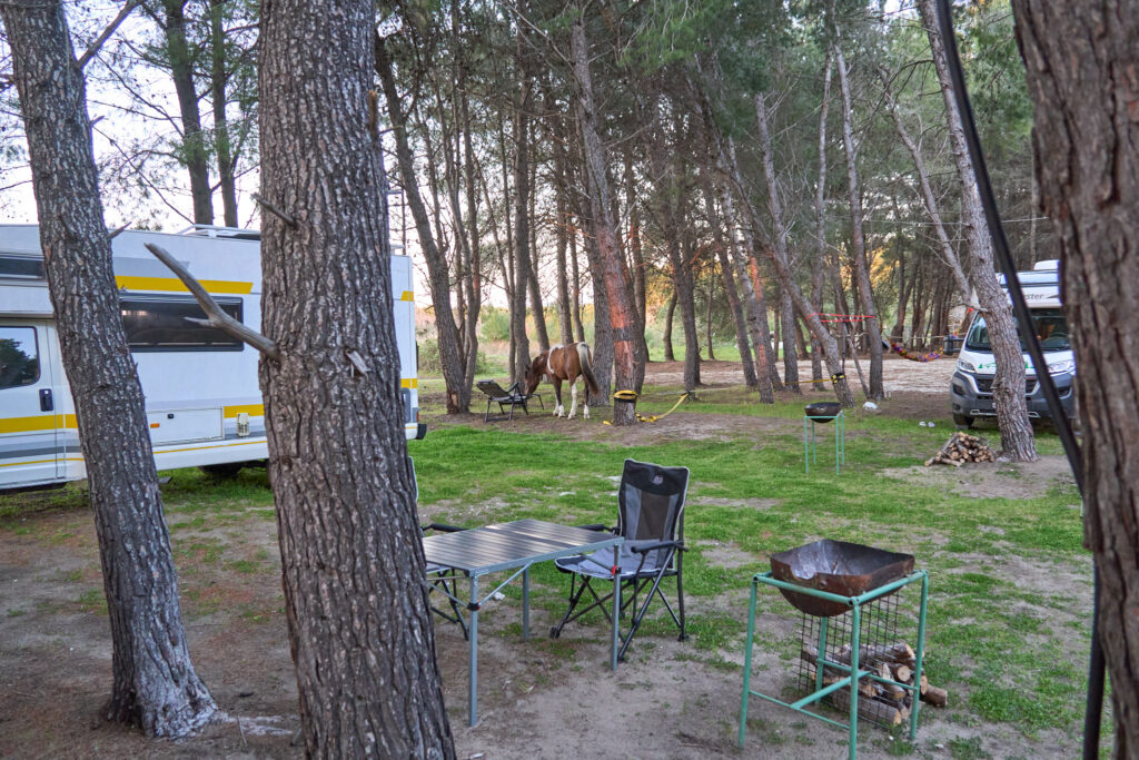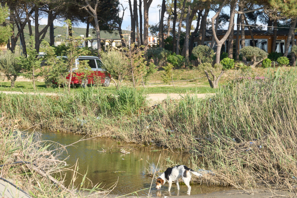 Wir lassen es an diesem Morgen sehr langsam angehen – halten einen Plausch auf dem Nachbarcampingplatz mit einem Rentnerehepaar, die ihren Speditionsbetrieb verkauft haben und nun den Winter mit ihrem gigantischen Womo samt Anhänger und Roller in Griechenland verbracht hat – bevor wir uns wieder in das Verkehrs- und Baustellenchaos der Küstenstrasse begeben. Über einen großen und chaotischen Kreisel verlassen wir Vlore und fahren in die Narta Lagune. Der Weg dorthin ist gesäumt von runtergekommenen Industrieanlagen. Kaum zu glauben, dass er zu einem der wichtigsten Landschaftsschutzgebiete Albaniens führen soll. Unser Ziel ist der Eco Campingplatz mitten im Pinienwald. Wir spazieren durch am Rande eines Feuchtgebiets an einem Süßwassersee entlang, waschen noch eine Maschine Wäsche und spannen Leinen durch die Pinienbäume.