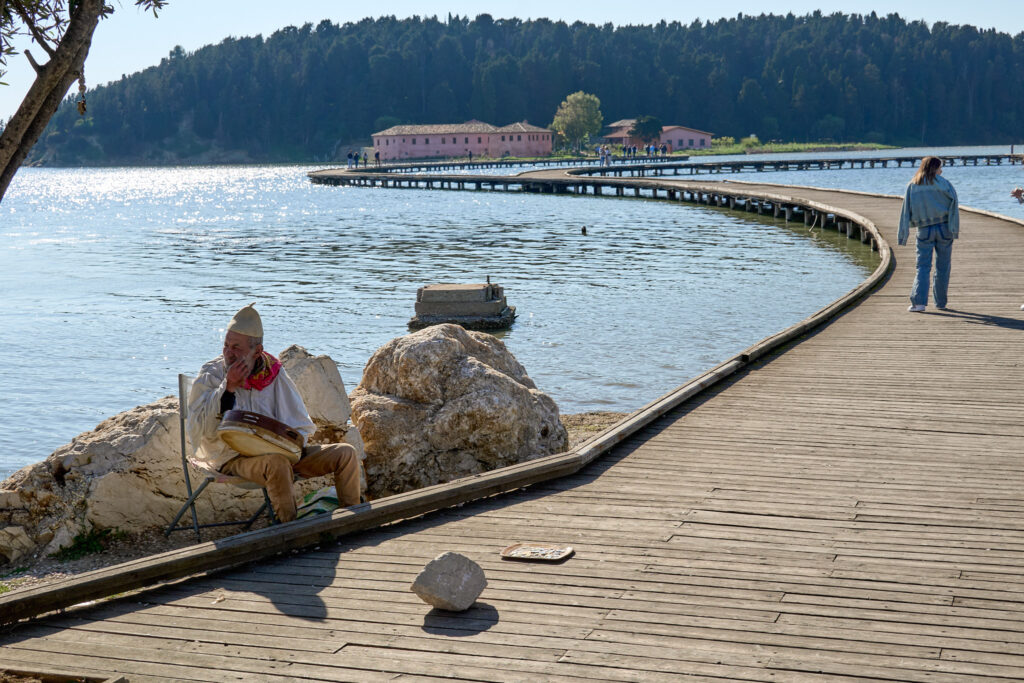 Dann fahren wir noch einkaufen und es ist wieder schwierig einen halbwegs gut sortierten Supermarkt zu finden. Am späten Nachmittag besuchen wir noch die Klosterinsel Zvernec. Ein gewundener Holzsteeg führt zur zu dem orthodoxen Kloster aus dem 13. Jhd. mit der Kirche Shen Merise.