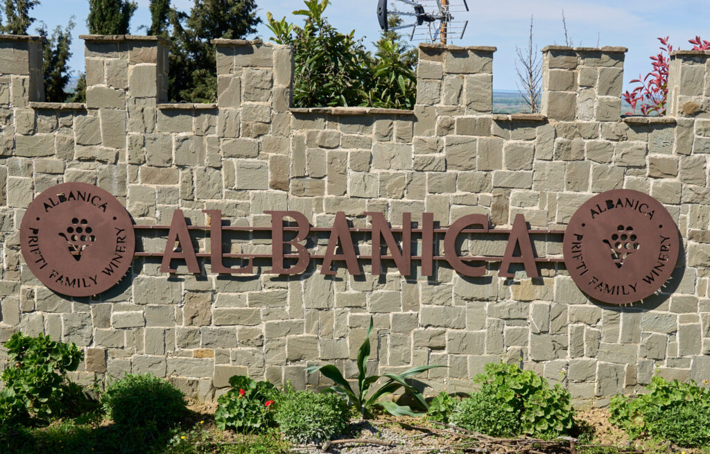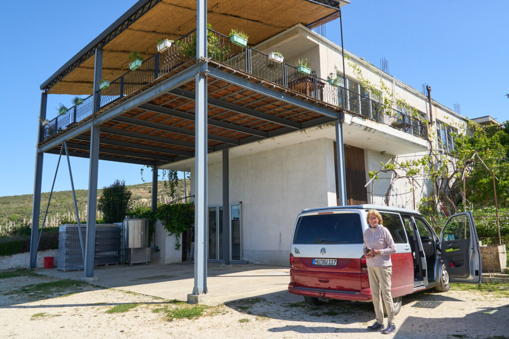 Nach der Besichtigung machen wir eine Kaffeepause am Bulli und fahren weiter westlich an einen Sandstrand von Semanit. Den Weg hatten wir uns einfacher und kürzer vorgestellt und den Strand schöner. Tatsächlich ist es sehr windig, der Strand vermüllt und die Buden noch verbarrikadiert und runtergekommen. Wir machen eine Strandspaziergang. Google leitet uns auf der Rückfahrt nicht auf die Hauptroute sondern auf eine offroad Strecke, die neue Strasse kannte er noch nicht. Wir fahren zum Weingut Albanica, das wir am späten Nachmittag nach einer anstrengednen Fahrt erreichen. Es hat einige Womo Plätze zur freien Übernachtung und Dusche/WC, allerdings nur mit kalten Wasser. Eine heiße Dusche wäre bei dem kalten Wetter angebracht. Bei sehr leckerem Essen und Wein erzählt uns der nette, gesprächige Gastgeber seine Geschichte und die Geschichte des Familienweingutes. Wir treffen ein nettes österreichisches Pärchen mit Kind, die ebenfalls auf dem Weingut essen und übernachten.