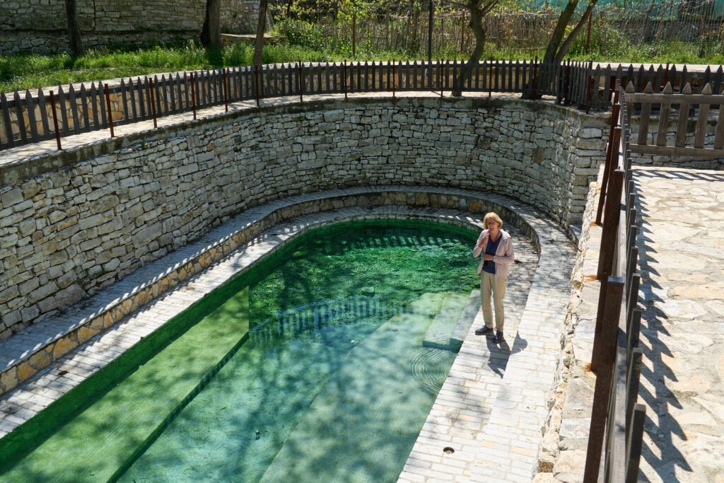 Unser nächstes Ziel ist Porto Palermo mit der Festung des Gewaltherrschers Ali Pascha von Tepelena. Wir besichtigen die düsteren kahlen Katakomben mit den Wohn- Schlafräumen, der Küche und dem Gefängnis bei Regen. Alles sehr dunkel und bedrückend.