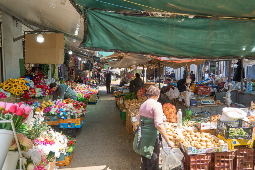 Manfred hat vor Abfahrt noch ein technisches Problem gelöst: unsere Bordelektronik war ausgefallen. Etwas später als geplant machen wir uns auf die lange Fahrstrecke und sind mittags in Elbasan. Hier finden wir einen gut gelegenen Parkplatz in der Stadt, die ca. 80T Einwohner hat. Wir besuchen den überdachten Markt, kaufen frisch gemahlenen Kaffee in kleinen Tüten, frisches Obst, Nüsse und Bergtee. Finden die Bäckerei, die als die beste im Lande gelobt wird und decken uns ein. Wir suchen uns ein Cafe und dann verputzen wir die Leckereien aus der Bäckerei im naheglegenen Markt. Nun können wir die 130 km lange Strecke nach Korce ganz in den Osten gut gestärkt antreten.