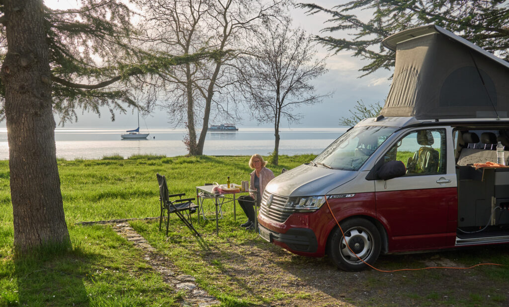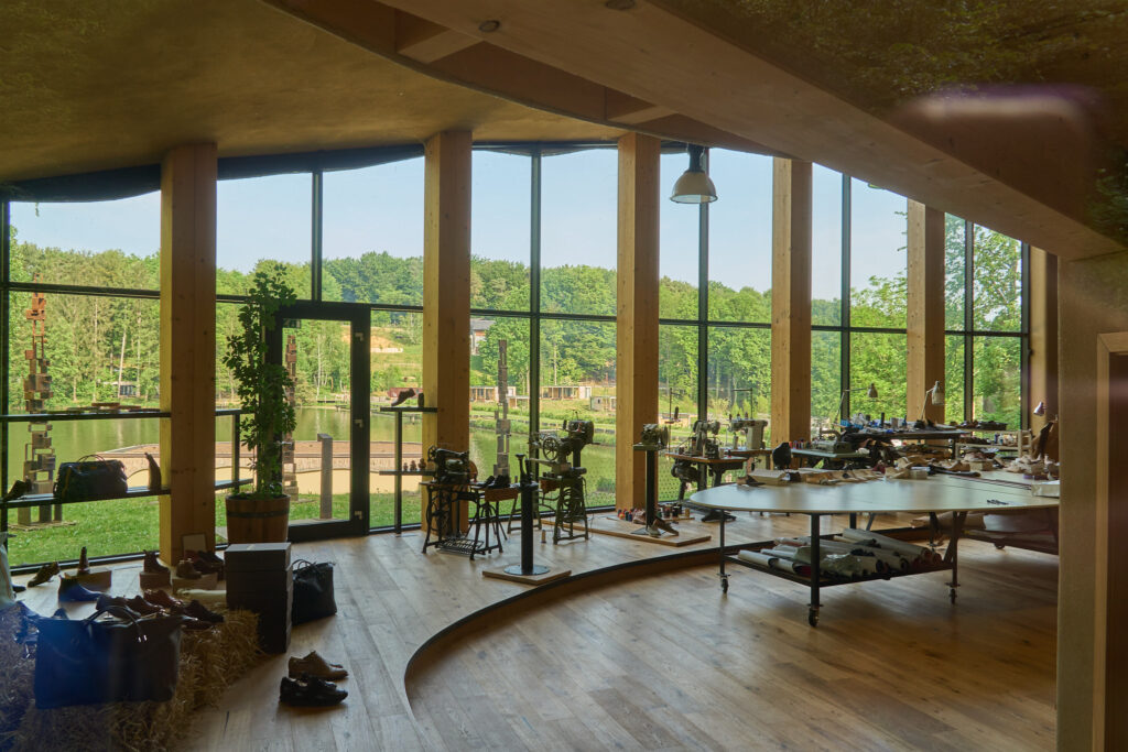 Wir fahren durch nach Slowenien zum Lake Blagus, das ist auch ein Falkenstein Campingplatz, der recht neu ist und mehr oder weniger auf unserer Route in der Nähe von Maribor liegt. Der Platz ist wirklich sehr schön gelegen und wir spazieren über einen langen Steegweg am idylischen See entlang. Besonders bemerkenswert ist eine schicke Schuhmanufaktur oberhalb des Campingplatzes. Leider hat sie heute, am Freitagabend, geschlossen. Die Vorräte des Campingplatz-Restaurants sind schon am frühen Abend von den anderen Gästen leergefuttert worden – also improvisieren wir wieder etwas Leckeres aus unseren Bordmitteln.