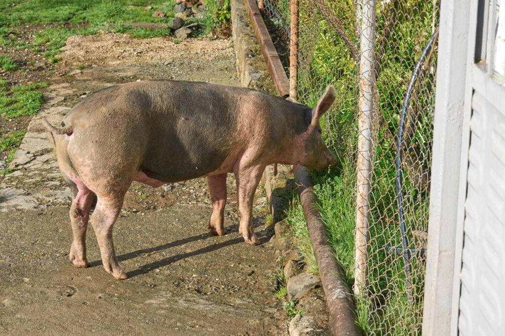 Das Hausschwein darf sich frei bewegen – muss aber offenbar selbst schauen, was es zu futtern gibt.