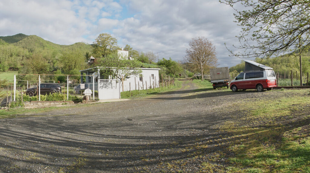 Heute morgen fahren wir weiter – quer durch Albanien wieder auf die Adria Seite. Unser Ziel ist das Kap Rodon. Zunächst machen wir noch einen Stop in Struga, kaufen bei einem guten Bäcker ein und bummeln kurz durch das Städtchen mit den vielen Brücken über den Schwarzen Drin. Dann folgt noch ein Abstecher nach Vevcani, das ist ein kleines Bergdorf mit uralten Häusern und viel Wasser, was talabwärts in Richtung Drin fließt. Die Gassen sind eng und es wird schwierig einen Parkplatz zu finden. Wir stärken uns etwas außerhalb des Dorfes am Bulli und machen uns auf in Richtung Grenze, immer entlang eines Tals. Auch das Flüsslein, das hier fließt ist voller Plastikflaschen. Der Grenzübertritt zurück nach Albanien klappt problemlos. Die weitere Fahrt gestaltet sich allerdings dann als sehr anstrengend, es regnet und die Strassen sind schlecht. Schnell merken wir, dass wir es heute nicht mehr ans Meer schaffen. Es gibt weit und breit kein Dorf, keinen Campingplatz und das Gelände ist auch unübersichtlich. Schließlich finden wir auf Google eine Art Gästehaus mit Camping (Pauline und Vlodomir) und wir rufen dort an, die Verständigung ist schwierig aber schließlich verstehen wir, dass wir dort hin kommen können. Uns erwartet „in the middle of nowhere“ ein kleiner Bauernhof. Die Bäuerin treibt gerade die Ziegen zusammen. Im strömenden Regen und bei einsetzender Dunkelheit werden wir nett empfangen, die Verständigung erfolgt über Google Translator. Das kleine Gästehaus liegt unterhalb des Bauernhauses und dort kocht die Bäuerin für uns ein leckeres Abendesses (Schweinefleisch vom Hausschwein, Frühlingszwiebeln aus dem Garten und Eier von den Hühnern). Der Hausherr unterhält sich mit uns und zeigt die Mißstände auf, die in Albanien herrschen. Kein eingetragenes Eigentumsrecht, Korruption, EU Gelder versickern etc. Seiner Frau sind diese Reden ganz offensichtlich nicht so recht. Nach dem leckeren Essen können dort im Badezimmer duschen. Die Nacht ist gut, abgesehen vom Hundegebell und frühen Gekrähe der Hähne. Am anderen morgen gibt es zum Frühstück zwar keinen Kaffee aber stattdessen frisch abgekochte, heiße Milch von der Kuh und in Fett ausgebackene Hefe-Teilchen mit Honig – das klassische albanische Frühstück. Die übriggebliebenen Eier werden uns noch als Wegzehrung eingepackt und wir machen uns nach dieser netten Erfahrung weiter auf den Weg.