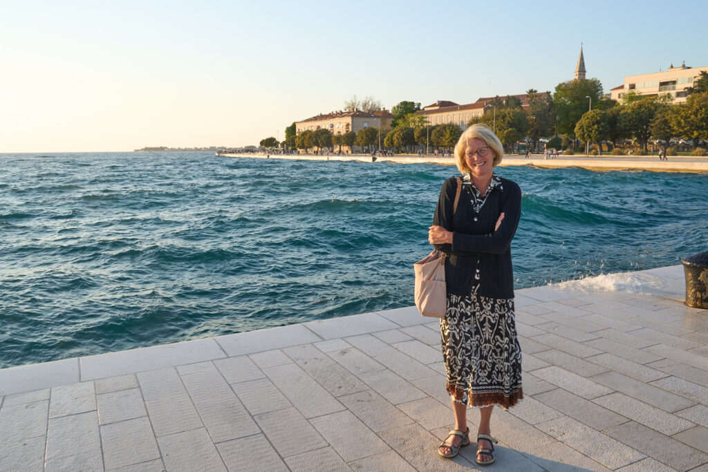 Am nächsten Tag kommen ganz bequem mit dem Bus, der vor dem Campingplatz abfährt nach Zadar und erreichen die lebhafte Altstadt, die auf einer Halbinsel liegt, über eine Fußgängerbrücke. Auch hier findet man die Überreste römischer Bauwerke und viele nette Cafés und Restaurants. Am Abend gehen wir nochmal an die Nordspitze der Halbinsel, und lauschen der dort installierten Meeresorgel. Auf dem Rückweg erwischen wir tatsächlich einen Bus, der uns umsonst zum Campingplatz fährt.