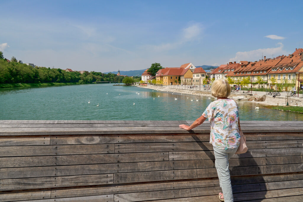 Wir verlassen unseren idyllischen Campingplatz in Richtung Maribor und fühlen uns nach Österreich versetzt. Maribor ist Universitätsstadt und hat eine hübsche Innenstadt an den Ufern der Drau. Wir spazieren über alte Plätze und Gassen, schauen in die Domkirche und gehen zum Haus der alten Rebe, an dem die älteste Weinrebe der Welt wächst. Eine große Brücke führt in den gegenüberliegenden Stadtteil. Von hier aus hat man einen schönen Blick auf die Stadt. Nachdem sich Manfred mit einer großen Waffel gestärkt hat, machen wir uns auf den Weg weiter Richtung Heimat. Wir fahren durch die Steiermark bis nach Österreich.