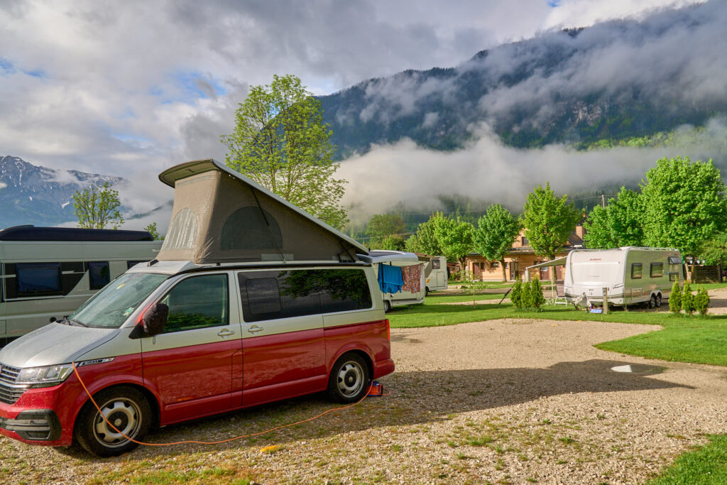 Wir legen am Abend nach eine Übernachtung in Österreich ein, auf einem wirklich sehr netten Campingplatz, dessen Namen wir nicht mehr wissen. Er wird von einem freundlichen Ehepaar betrieben. Wir gehen am frühen Abend noch einen wunderschönen Spazierweg. Der Regen hat uns in der Zeit verschont und wir haben schöne Blicke auf die grünen Wiesen und hohen Berge. Am Abend essen wir eine wirklich sehr guten Burger, liebevoll von der Campingplatzbetreiberin zubereitet, in dem kleinen, familiären Restaurant des Platzes.